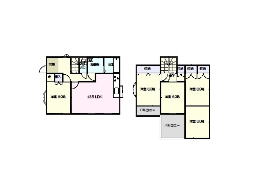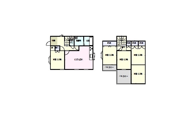 | 間取り | 2F 洋6 洋6 洋6 洋6 1F 洋6 LDK13.5 |