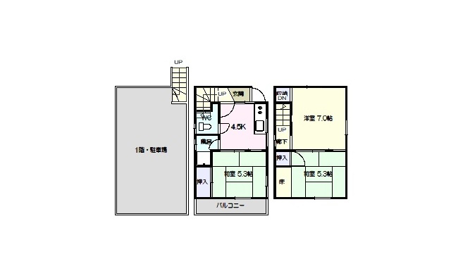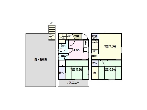 | 間取り | 3階 洋7 和5・3 2階 和5・3 4.5K 1階 駐車場 |